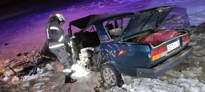 ДТП произошло вечером 2 января, недалеко от Ара-Булака. Водитель «Жигули» не учел боковое расстояние и столкнулся с фурой. На место аварии выехали сотрудники МЧС, которые отключили аккумулятор, вытащили водителя из смятого кузова и доставили его в Агинскую ЦРБ. Фото: канал МЧС в Max 📌📌 Предложить новость