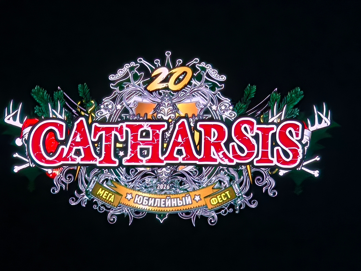 Перед тем как продолжить рассказ о фесте и его участниках, стоит упомянуть, что в продолжение всего мероприятия над залом и сценой постоянно летал дрон, который, по-видимому, снимал музыкантов и зрителей. Остаётся дождаться, когда видео появится в свободном доступе. Зашёл в группу Главной Metal-ёлки в Контакте, но там полнейшая тишина. Странно, что было много зрителей делавших фото и видео, но прошло 4 дня и кроме меня там пока никто ничего не выложил. Хватит лирики, перейдём к музыкальному празднику. Следующими после Петра Елфимова на сцену вышли "отцы-основатели" фестиваля - группа Catharsis. Кратко о них я уже рассказывал в своём блоге (читать по ссылке: https://dzen.ru/a/aDDi9K3LHlFwo2Bf), поэтому повторяться не буду.