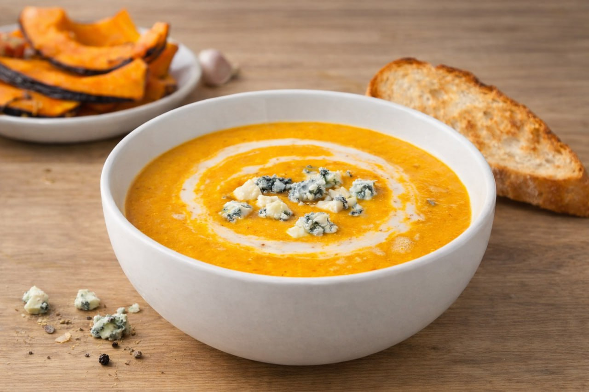 Здравствуйте, мои дорогие! Есть такие блюда, которые словно созданы для неспешных вечеров. Когда за окном темнеет раньше обычного, на кухне тихо булькает кастрюля, а вы никуда не торопитесь. Этот тыквенный суп именно такой. Его не едят на бегу, его пробуют ложка за ложкой, давая вкусу раскрыться. Он мягкий, бархатный, с лёгкой сладостью тыквы, сливочной нежностью кокосового молока и неожиданно яркой ноткой сыра с голубой плесенью. Суп получается уютный, почти обнимающий, и каждый раз, когда я его готовлю, кухня наполняется тем самым ароматом спокойствия и домашнего тепла. Я особенно люблю этот рецепт за простоту. Никакой суеты, никаких сложных техник. Всё делается спокойно, размеренно, с удовольствием. Можно включить музыку, налить себе чай и просто готовить, не поглядывая на часы. Ингредиенты: Как приготовить: 1. Тыкву нарежьте крупными кусками прямо с кожурой. Так она лучше сохранит вкус и не пересохнет. Выложите на противень, накройте фольгой и отправьте в духовку, разогретую до 18