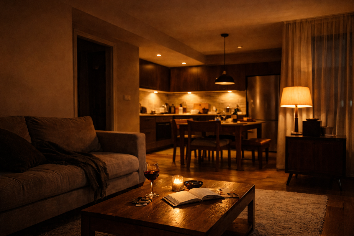 Если потолок остаётся основным источником — квартира будет держать в напряжении, даже при тёплой температуре света. Третье место — проходы, которые «проходят по нормам».