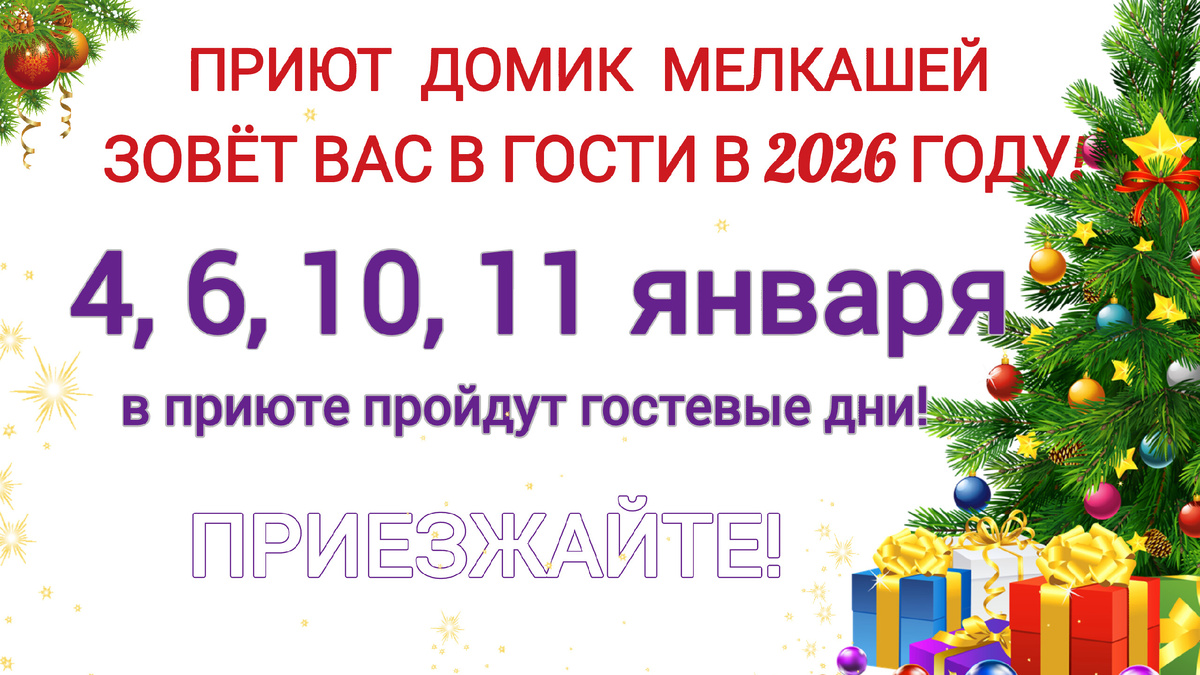 3,4,6,10,11 января у нас в приюте проходят гостевые дни! 🎄