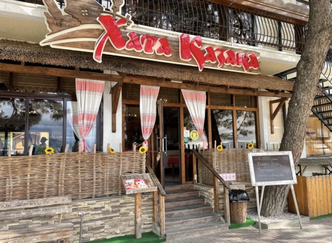 Мы поселились ближе к Толстому мысу, в маленьком 3-звездочном отеле "Самара", буквально в 100 метрах от пляжа. Причём шли мы на этот пляж через совершенно очаровательный, на мой взгляд, ресторанчик "Хата Казака", где каждый раз в качестве комплимента приносили хлеб, сало и рюмку чего-то крепкого. Каждый раз! Даже на завтрак!