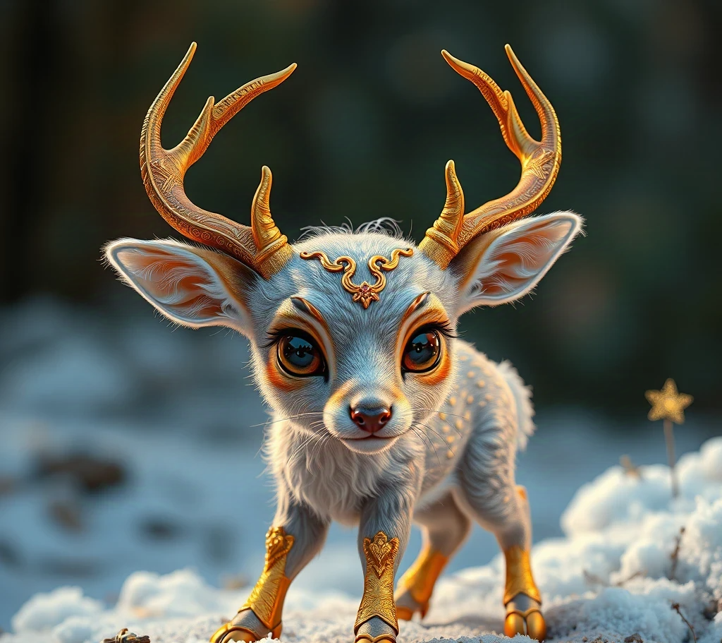 Диана открыла глаза, которых не осознавала, что зажмурила. Перед ней, паря в воздухе и потирая лапкой макушку, висел… зверёк. Маленький, размером с кошку, похожий на оленёнка из сказочной иллюстрации. Шёрстка отливала серебром, а изящные рожки и копытца искрились чистым золотом. Большие, умные глаза смотрели на неё с нескрываемым укором.
