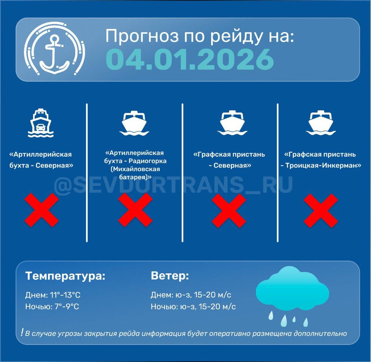 Из-за неблагоприятных погодных условий морской пассажирский транспорт осуществлять движение не будет.