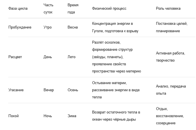 - Концентрация: океан формирует Гугол через локальную флуктуацию энергии в первичном пространстве.