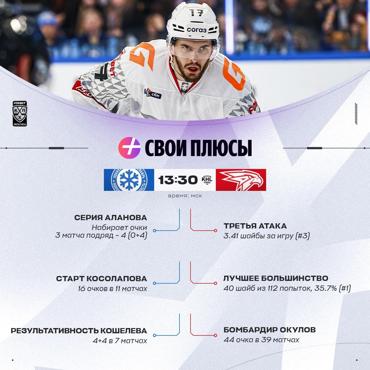 Серии Порядина 🔴 и Да Косты 🚗, бомбардир Полтапов 🐴 — у каждой команды есть Свои Плюсы. Некоторые из них могут стать ключевыми в сегодняшних матчах.