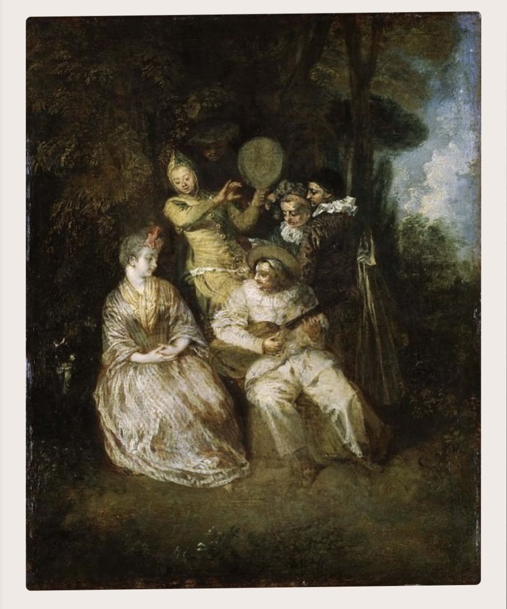 . Доброе утро друзья продолжим знакомиться с особенностями творчества Антуана Ватто... Он стал первым (и по значению, и по хронологии) художником времени, которое называют «галантный век» . Легкомысленные дамы и их рассеянно-учтивые кавалеры, меланхоличные музыканты, уличные торговцы и актёры – вот герои Ватто, которых он изображает со всевозможной грацией и утончённым психологизмом, но без тени грубоватого разоблачительства, свойственного жанровой живописи. Картины Ватто атмосферны – настроение в них важнее сюжета, подтекст важнее интриги, эмоция важнее действия. Ощущение непродолжительности счастья, затаённой печали заставляет говорить о «меланхолическом реализме Ватто». Рисунок Ватто всегда лёгок, динамичен, линии – прихотливы и мелодичны. Ватто первым обозначил рокайльную цветовую гамму: избегая контрастных сочетаний и локальных цветов, он предпочитал богатые и утончённо-изысканные созвучия оттенков, делал многослойные лессировки, создавал мерцающую фактуру. #яркиеличности