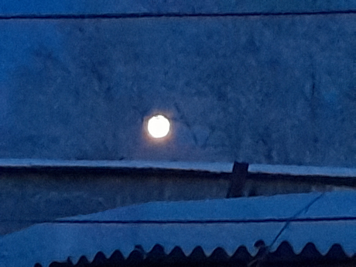 Я вчера фотографировала луну, было полнолуние, луна была большая, красивая и жёлтая, луна только всходила и находилась за берёзами, но камера моего телефона не передаёт всей её красоты, вот что у меня получилось.