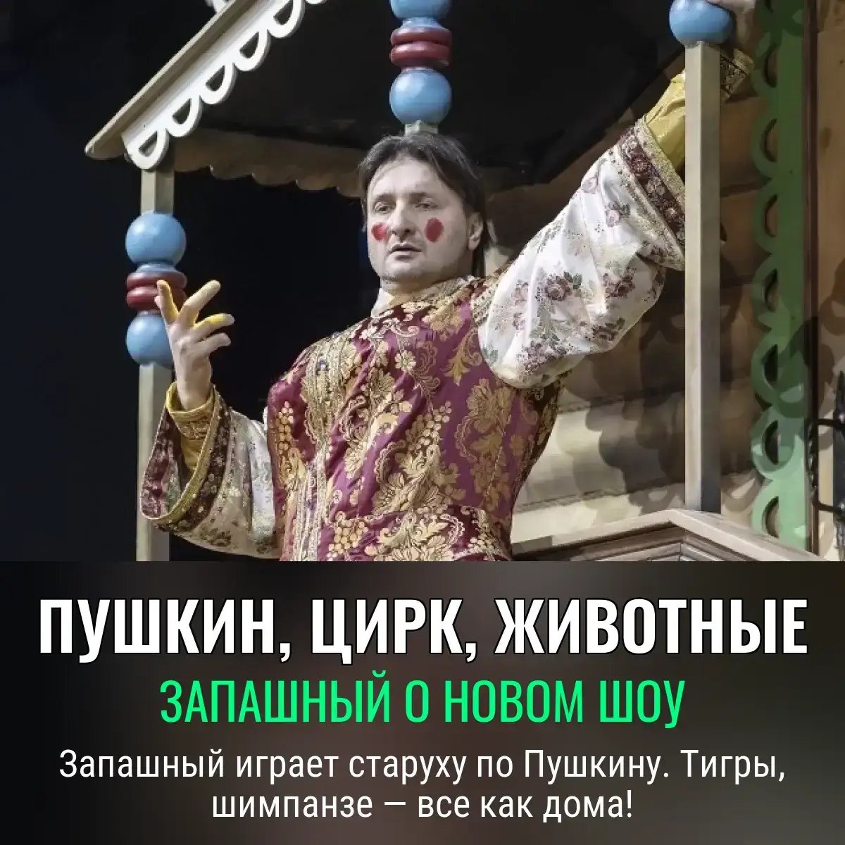 Запашный в роли бабки-мажора. Да-да, тигры, львы и звезда Телеграма — шимпанзе Гермес — на сцене! В Госдуме, конечно, хотят все запретить, мол, зверей жалко. Но по мнению Запашного, роботы не заменят ни кошек, ни зрелищ. «Чем круче AI, тем дороже цирк» — так и живём, рисуя костюмы за 15 минут и встречая Новый год в обнимку со львом., Следите за новостями 📩