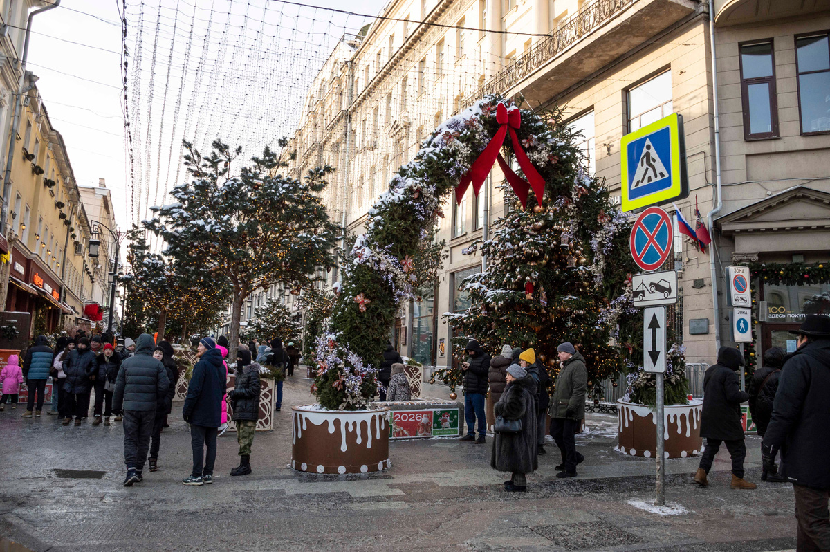 Первое января 2026 года выдалось солнечным и меру морозным. Иду смотреть на вкусные домики в Камергерском переулке. Там обустроена праздничная пряничная локация, которая на карте проекта "Зима в Москве" называется "Сладкие чудеса" в Камергерском. Начало выглядит так, со стороны Большой Дмитровки.