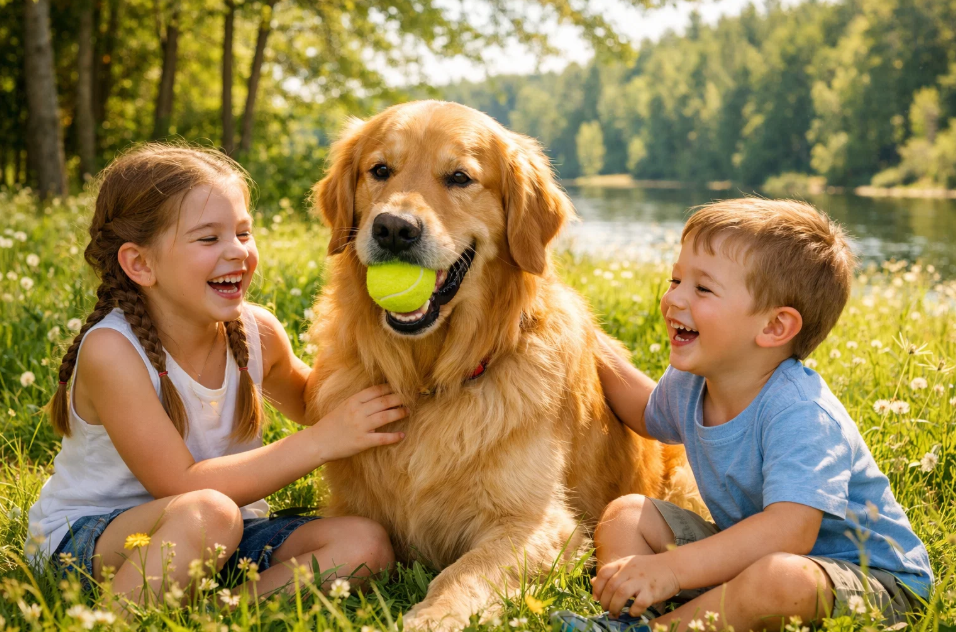 Для семьи с детьми золотистый ретривер — настоящий подарок. Их терпение стало почти легендарным. Эти собаки стойко переносят детские шалости, неосторожные объятия и навязчивое внимание. Они редко огрызаются, предпочитая просто отойти в сторону, если устали от общения. Ретриверы инстинктивно чувствуют хрупкость ребенка и ведут себя с особой аккуратностью. Они становятся не только друзьями, но и няньками, бдительно наблюдающими за малышом. Совместные игры — естественная стихия для ретривера. Они с радостью принесут брошенный мяч, будут бегать наперегонки, плавать вместе с детьми в водоеме. Важно отметить, что любое общение собаки и маленького ребенка должно проходить под контролем взрослых, это правило справедливо даже для такой доброй породы.