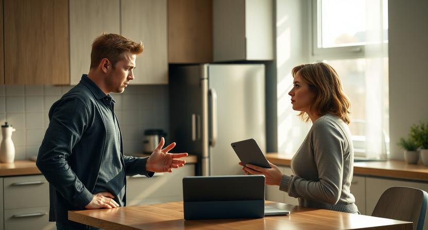После этого разговора он не ушел. Не хлопнул дверью. Он остался. Но теперь их квартира окончательно перестала быть общим пространством. Он занимал одну сторону дивана, она — другую. Он говорил коротко, она — по делу. Каждый день превращался в проверку на выносливость.