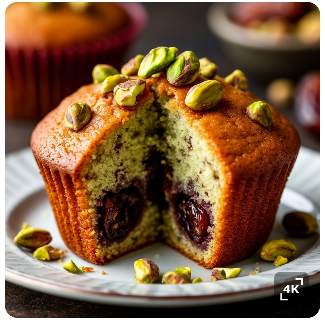 Эти кексы получаются нежными, слегка влажными внутри, благодаря молоку и финикам, а фисташки придают им приятный хруст и аромат.