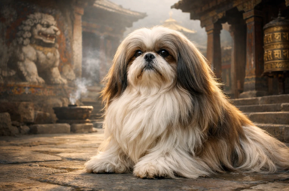 История ши-тцу окутана легендами, что делает её одной из самых таинственных пород. Согласно тибетским преданиям, эти собаки были спутниками буддийских монахов и считались земными воплощениями львов-хранителей, изображения которых часто можно увидеть у входа в храмы. Лев в буддийской традиции символизирует силу, мудрость и защиту учения Будды, но при этом он должен быть кротким и сострадательным. Ши-тцу, с его львиной гривой и добродушным нравом, идеально воплощал этот парадокс.
