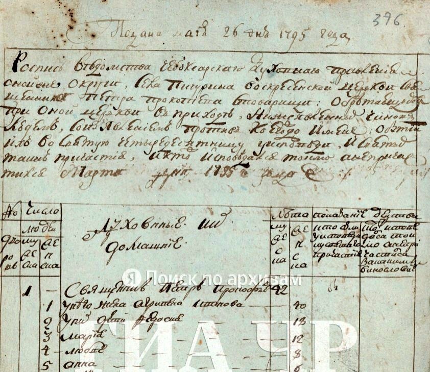 ГИА Чувашской Республики (ГИА ЧР), фонд № 225, опись № 7, дело № 16, стр. 765 скан. Подана маия 26 дня 1795 года. Роспись Ведомства Чебоксарского духовного правления оной же округи села Пичурина Воскресенской церкви священника Петра Прокофьева с товарищи обретающихся при оной церкви в приходе нижеявленых чинов людем со изьявлением против коегождо имени о бытии их в Святую Четыредесятницу у исповеди и Святых таин причастия, и кто ж исповедовался токмо а не причастился. Марта дня 1795 года. Духовные и их домашние. Стр. 766 скан. 13. пономарь Яков Борисов. 21 года. У него жена Евдокия Иванова. 24. У них дети: Василей. 2. Евграф. Полугоду. https://yandex.ru/archive/catalog/20b24de8-83d1-4826-8ab3-4f419eb50819/766