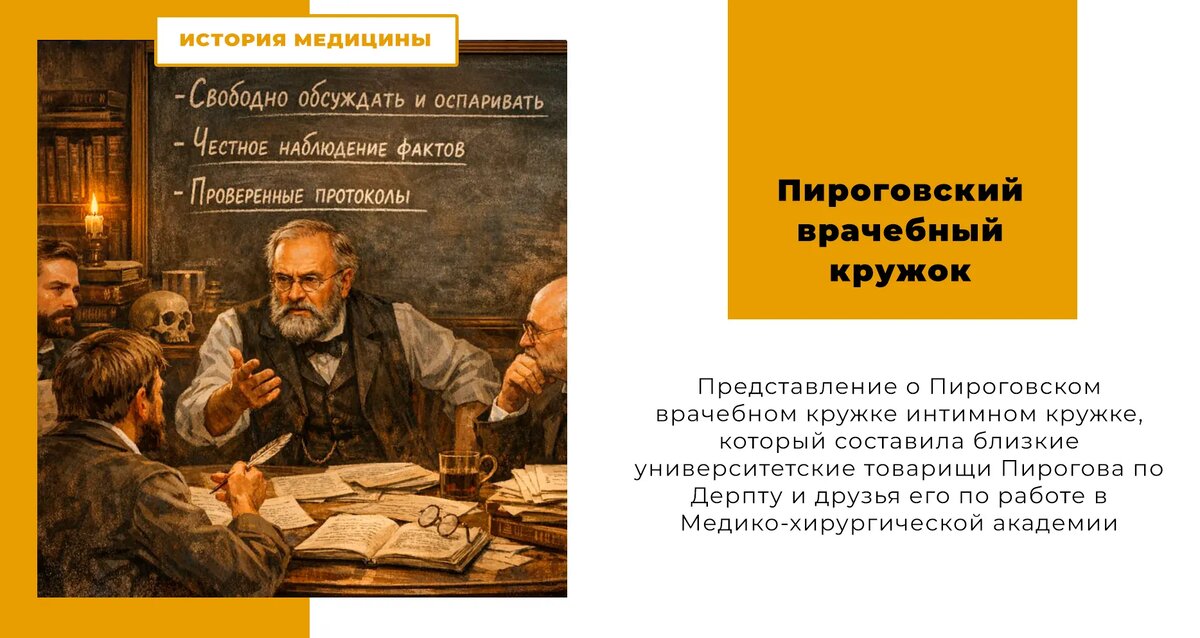 Есть тексты, которые почти не про медицину — и именно поэтому про неё больше всего. В заметке о Пироговском врачебном кружке меня цепляет не перечень докладов и не «сколько раз выступал». Меня цепляет устройство пространства, где врачам разрешено быть неторопливо честными. Белкин показывает кружок как интимную лабораторию профессионального мышления: без устава, без трибуны, без внешней сцены — «медицинская могучая кучка», которая собирается по квартирам, сначала час разговора, потом сообщения в письменном виде, потом — обязательное утверждение протоколов, проверенных авторами. И отдельная формула, почти клятва: *«отказ от мелкого тщеславия… стремление к правдивому без предвзятости наблюдению фактов… свободное обсуждение и оспаривание»*. Ключевое напряжение эпохи Интеллектуальный конфликт здесь простой и неудобный: научная точность требует близости и доверия, а официальная медицина того времени (да и любого времени) любит вертикаль, ритуал авторитета и «правильный тон». Кружок выбирает
