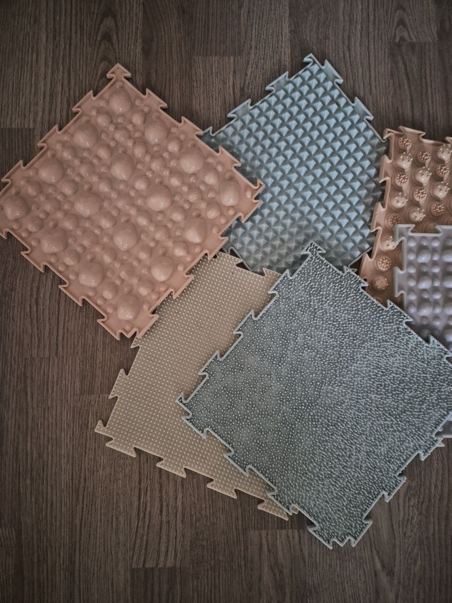 🧗♀️ Несколько идей для зарядки/разрядки/разминки, называйте как хотите, на ортоковриках⬇️ Коврик мягкая трава Попросите ребёнка встать на коврик и выполнить упражнение жучок – поднимать и опускать руки (крылышки), покружиться на коврике в одном направлении 3-4 раза и в другом направлении 3-4 раза. Вы в это время можете читать стих про жука: «Не жужжу, когда сижу, Не жужжу, когда хожу, Не жужжу, когда тружусь, А жужжу, когда кружусь» Шипы мягкие упражнение – прыжки на месте на двух ногах 10 раз, прыжки на двух ногах вокруг себя в одном направлении и в другом по 6-10 раз. «На лужайке всё стрекочет, Часто прыгая, хлопочет. Цветом он, как огуречик ... Как зовут его?» (Кузнечик) Волна жёсткий Рисунок ковриков располагается поперёк – топтание по поверхности коврика 10-16 раз. Трава жёсткая Упражнение «Пчёлка» – поднять руки (крылышки) в стороны и делать перекат с носка на пятку, с пятки на носок 10 раз. "Насекомое в почёте, Целый день она в полёте, Опыляет все цветы, Чтоб медку отведа