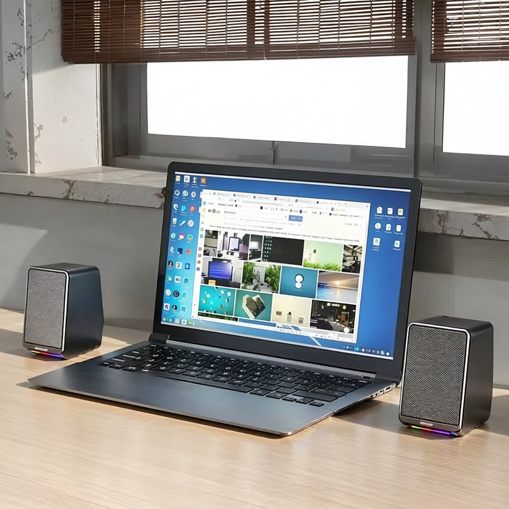 - Акустическая система: Маленькая, да удаленькая! Колонки с RGB-подсветкой – это, конечно, баловство, но звук вполне приличный для озвучивания рабочего места. А если учесть цену, то вообще подарок! Подключается по USB – никаких заморочек.