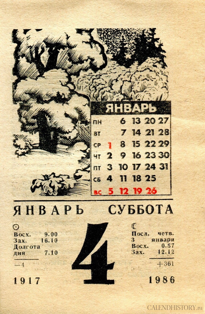 4 января 1986-го года — Календарь для женщин