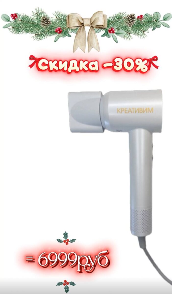 инновационное устройство, созданное для тех, кто ценит мгновенный результат, бережное отношение к волосам и удобство в использовании. Благодаря бесщёточному двигателю 110 000 об/мин фен сушит волосы в два раза быстрее, не пересушивая и не повреждая их структуру. Преимущества фена “КРЕАТИВИМ” • Быстрая сушка без перегрева – мощный поток воздуха моментально удаляет влагу, сохраняя естественную красоту волос. • Отрицательная ионизация – устраняет статическое электричество, волосы становятся гладкими, мягкими и блестящими. • Интеллектуальный контроль температуры – предотвращает пересушивание, защищает от ломкости. • Магнитная насадка 360° – легко крепится и регулируется для точной укладки. • Лёгкий и сбалансированный – не устаёт рука даже при длительном использовании. • Три режима температуры – холодный воздух для фиксации, тёплый для ежедневного ухода, горячий для быстрой сушки. Для кого этот фен? • Для тех, кто не хочет тратить много времени на сушку волос. • Для профессионалов, которым