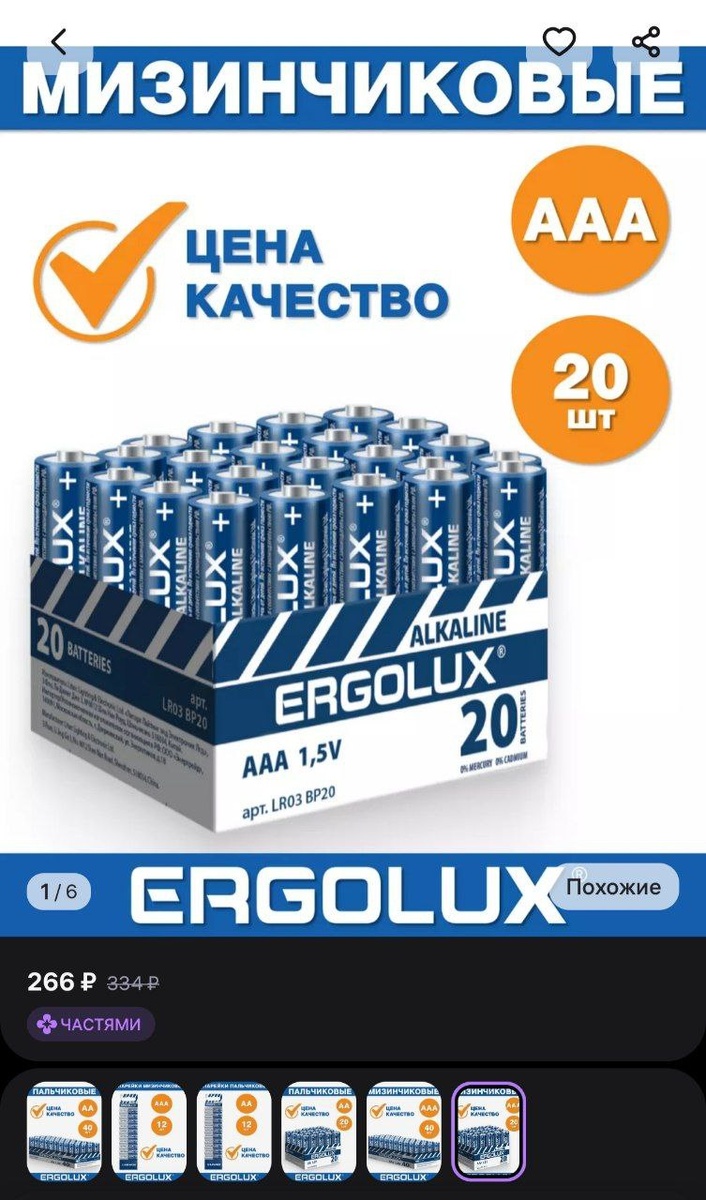 π₯ ΠΠ°ΡΠ°ΡΠ΅ΠΉΠΊΠΈ ΠΌΠΈΠ·ΠΈΠ½ΡΠΈΠΊΠΎΠ²ΡΠ΅ AAA AAA 20 ΡΡ Ergolux Π·Π° 266β½