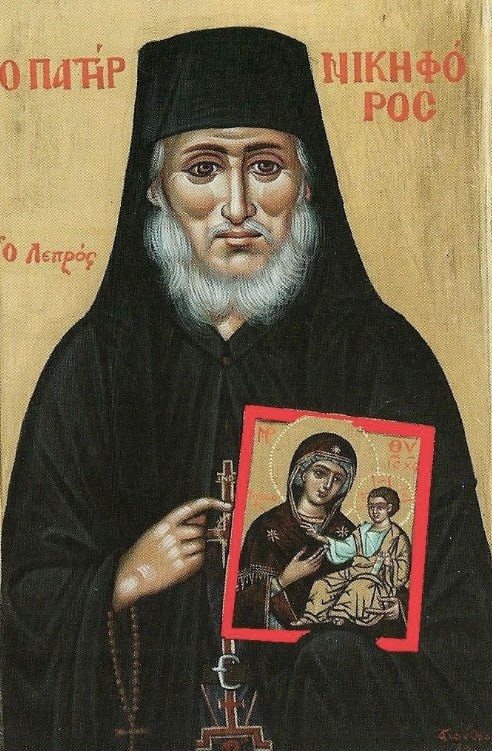 Преподобный Никифор (в миру Николай Джанакакис) родился в селении Сирикари на острове Крит в 1890 году в благочестивой семье. В 13 лет родители отдали его на обучение цирюльнику, жившему в городе Ханья. Тогда же у него обнаружились первые признаки проказы. Когда проказа стала распространяться на лицо и руки, один иерей посоветовал Николаю отправиться на остров Хиос, где был лепрозорий, устроенный прподобным Анфимом. Николай прибыл на Хиос в 1914 году в возрасте 24 лет. Там для Николая открылось поле деятельности для совершенствования добродетелей. Через два года отец Анфим постриг Николая в монашество с именем Никифор. Восходя с годами в иноческом делании от силы в силу под руководством опытного духовника, святой Никифор стяжал многие добродетели: кротость, смирение, покорность воле Божией и особенно — благодарение Ему. За безграничное терпение и любовь к ближним Господь наделил Никифора даром пророчества и утешения страждущих. В 1957 году практически слепой и прикованный к постели