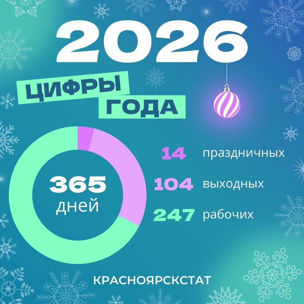 Статистики подсчитали, что в этом году будет 365 дней или 8 760 часов или 525 600 минут или 31 536 000 секунд. А также 53 четверга и по 52 остальных дней недели. А ещё 32% дней — это праздники и выходные. При этом, в январе выходных дней больше, чем рабочих. Фото: Красноярскстат