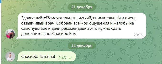 Что делали на консультации: 1. выслушала историю Татьяны о ее проблемах с ЖКТ. 2. Определили гастро симптомы и степень их выраженности. 3. Определили потенциальные причины их появления и сохранения, несмотря на то, что она проходила терапию, назначенную врачами и добросовестно выполняла рекомендации. 4. Разобрали почему диета не помогает. 5. Проанализировали обследования. 6. Составили список дообследования. По результатам консультации Татьяна теперь знает, что дальше делать и в каком направлении двигаться. Оставить заявку на консультацию по разбору ваших симптомов и разработки стратегии восстановления работы ЖКТ можно по ссылке gastroenterolog-mironova.ru