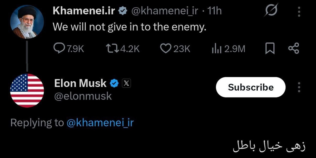 🇺🇸🇮🇷 «Սխալ պատրանք», - Իլոն Մասկը պատասխանել է Իրանի գերագույն առաջնորդի «Մենք չենք հանձնվելու թշնամուն» թվիթին