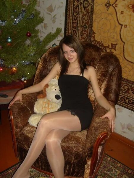 В уютной комнате, наполненной атмосферой новогоднего волшебства, молодая женщина грациозно расположилась в мягком, бархатистом кресле. Она словно воплощение праздничного спокойствия — её поза расслаблена, но в то же время изящна. Чёрное платье, как ночное небо, подчёркивает хрупкость и утончённость её фигуры, а полупрозрачные колготки придают облику лёгкую игривость.