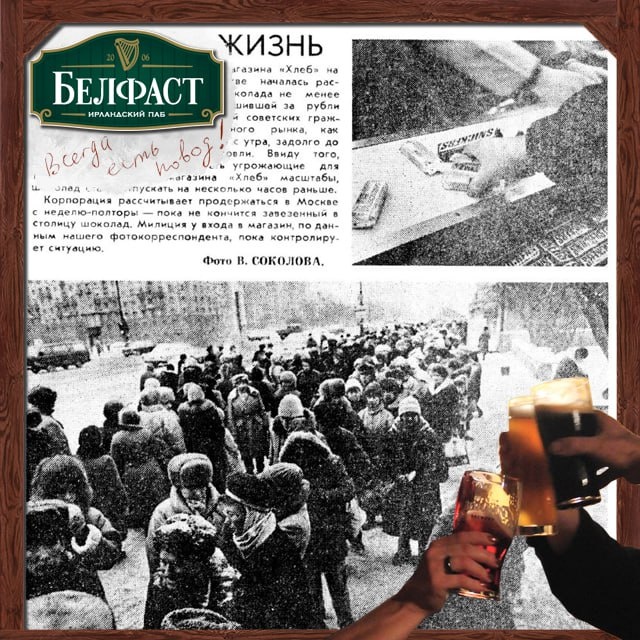 : «Утром 4 января 1991 года у магазина "Хлеб" на проспекте Калинина, 46 в Москве началась распродажа всемирно известного шоколада не менее известной корпорации "Марс", решившей за рубли познакомить со своей продукцией советских граждан. Своеобразие отечественного рынка, как и ожидали, начало ощущаться с утра, задолго до намеченного часа открытия торговли. Ввиду того, что очередь начала приобретать угрожающие для проспекта Калинина и магазина "Хлеб" масштабы, шоколад стали отпускать за несколько часов раньше. Корпорация рассчитывает продержаться в Москве с неделю-полторы - пока не кончится завезенный в столицу шоколад. Милиция у входа в магазин, по данным нашего фотокорреспондента, пока контролирует ситуацию». Ну, за сладкую жизнь! http://belfast-pub.ru/ . #belfast_pub #паб #какмылюбим #естьповод #марс #сникерс