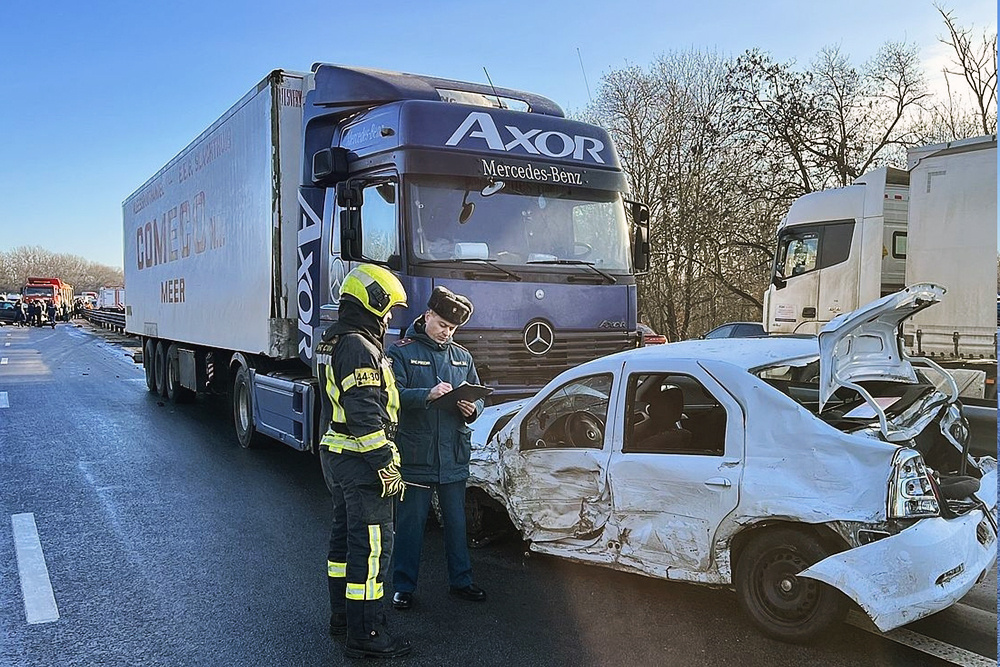В Ростовской области произошло массовое ДТП. Столкнулись пять легковых машин и большегруз. В аварии погибли четыре человека, ещё двое пострадали, сообщает региональный главк МЧС. По предварительным данным, виновником столкновения был водитель грузового автопоезда. ДТП произошло на 1042 километре скоростной трассы М-4 "Дон" в районе посёлка Красный Колос. На месте работают спасатели и сотрудники полиции.