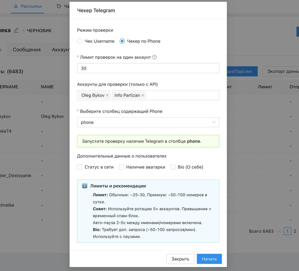Обновил и оптимизировал несколько уже существующих функций. 1. Чекер Телефонов и Username на наличие в телеграм полностью переписан. Сейчас вы только задает лимит на количество чеков с одного аккаунта. Чек идет в многопоточном режиме с интервалом в 10 секунд между чеками чтобы не зафлудить аккаунт. 2. Чат бот с ИИ сейчас может отвечать не только текстом полученным из ИИ но и отправлять готовые собщения из самой программы. Например сообщения с картинками, файлами или контактом. Для этого нужно в настройках ИИ бота в разделе вопросы и ответы выбрать пункт Сообщние вместо Текст. И выбрать сообщение созданное в программе в разделе Сообщения. 3. Обновил логику рассылки и парсинга контактов. Сейчас при импорте контактов из чатов или каналов сохраняется не только CHAT ID но еще и данные из какого чата этот контакт был взят. При рассылке эта информация позволяет получить новый ХЕШ ключ для доступа к чату для других ваших Аккаунтов. Это нужно если парсинг производил один аккаунт а рассылка и
