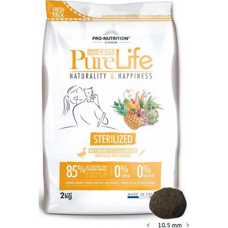 Pure Life не позиционируется как беззерновой в классическом понимании. В сухих кормах зерновые не указаны явно, но во влажных кормах в качестве загустителя используется картофельный крахмал и тапиока. Это не злаки, но источник углеводов. Для большинства здоровых кошек это не проблема, но владельцам питомцев с диабетом или выраженной углеводной непереносимостью на это стоит обратить внимание.