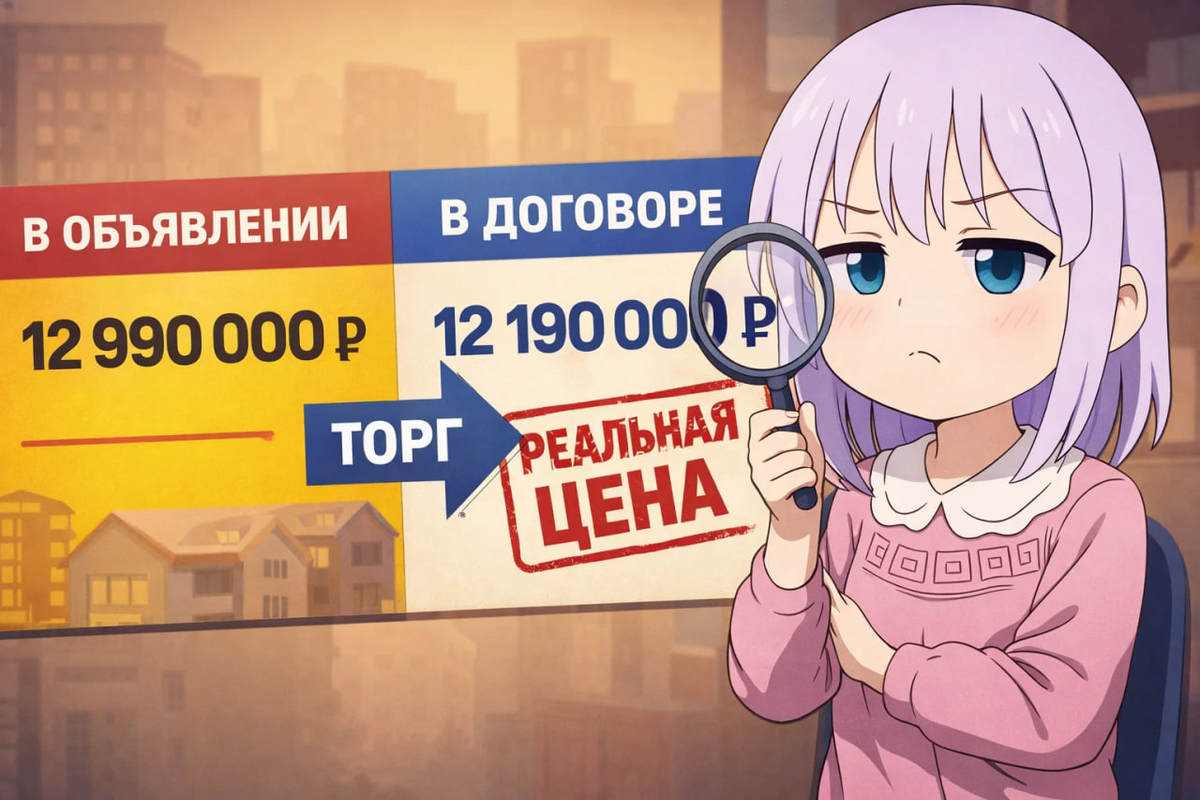 Есть странный российский феномен: ты читаешь новости — «вторичка остывает», «скидки растут», «продавцы идут на торг». Открываешь объявления — а там всё как высечено в граните: “12 990 000, без торга”. И сидит этот ценник, как памятник человеческой гордости.