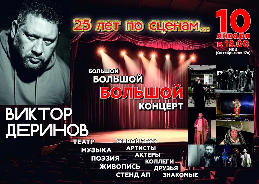 Инновационный культурный центр (ИКЦ) в Калуге станет площадкой для масштабного юбилейного вечера, посвящённого 25-летию творческой деятельности артиста Виктора Деринова. Мероприятие под названием «Виктор Деринов 25 лет по сценам…» состоится 10 января в 19:00. Этот вечер обещает стать ярким и многожанровым представлением, полностью раскрывающим многогранный талант юбиляра. Виктор Деринов, известный как актёр театра и кино, режиссёр и музыкант, представит публике насыщенную программу, включающую самые разные направления своего творчества. В рамках мероприятия зрителей ждёт концерт с авторской музыкой и текстами в исполнении музыкальной группы «Музыканщики», а также сольные проекты артиста, охватывающие стили от рэпа до хард-рока. Театральная часть программы будет состоять из миниатюр, скетчей и драматических сцен. Отдельным блоком станет живой инструментальный концерт, а в пространстве ИКЦ будет организована выставка картин. Особенностью вечера станут выступления, демонстрирующие лингвис