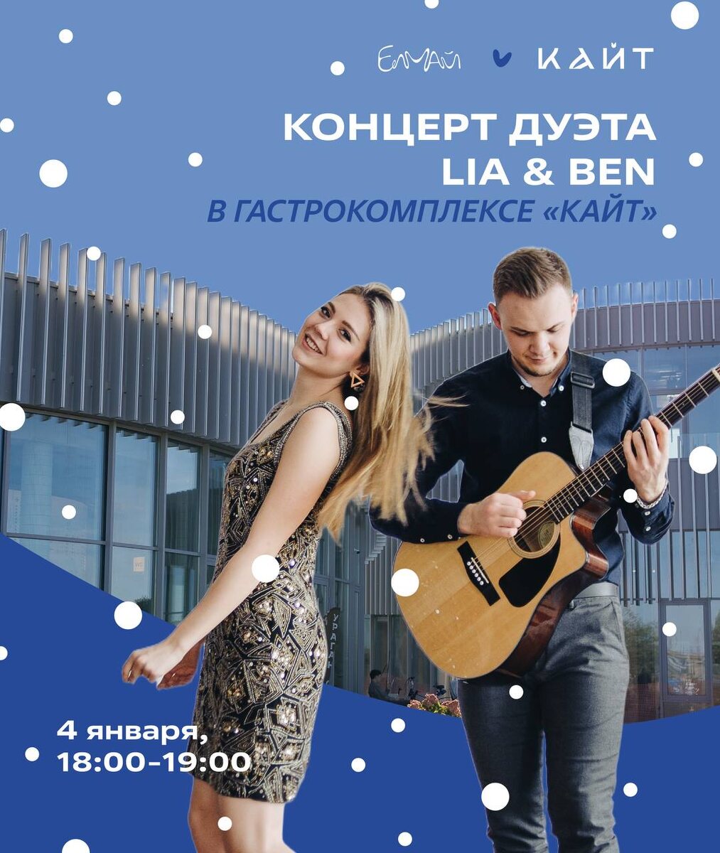 💙 4 января приглашаем на квартирник от команды Парков Казани в гастрокомплексе «Кайт». Лаунж-дуэт Lia & Ben исполнит каверы на популярные новогодние песни и хиты разных лет. ➡️ 4 января, 18:00-19:00 ➡️ Гастрокомплекс «Кайт», ул. Подлужная, 1 Идеальный вечер для ценителей камерной музыки, душевных разговоров и праздничного настроения. Ждем вас! ❄️ Больше информации в нашей группе, переходите