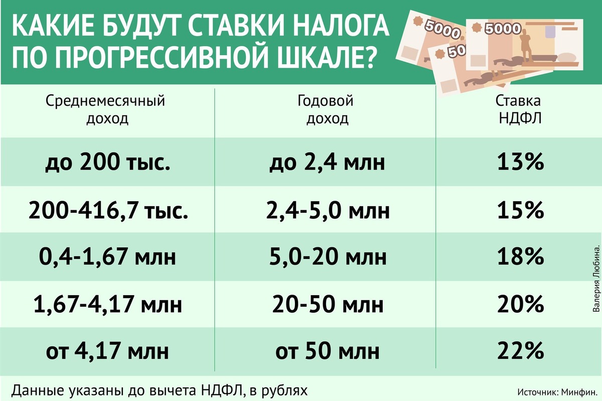 В 2025 году налогообложение вкладов регулируется следующими правилами: 1. Что и когда платить в 2025 году 2. Необлагаемая сумма в 2025 году Сумма дохода, которая не облагается налогом, рассчитывается как 1 млн рублей × максимальное значение ключевой ставки ЦБ РФ на 1-е число каждого месяца отчетного года. 3. Ставки налога в 2025 году С 1 января 2025 года введена прогрессивная шкала НДФЛ, которая затрагивает и доходы от вкладов: 4. Особенности расчета Минфин прогнозирует поступления от налога на доходы по банковским вкладам в бюджет на 2025 год в размере 251,49 млрд. Это в два раза больше, чем в 2024 году. В 2026 году планируется собрать в 262,14 млрд, а в 2027 — 173,34 млрд. Такой рост связан с динамикой ключевой ставки.