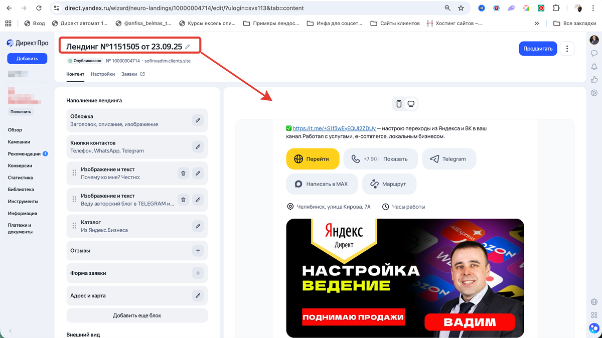 ✅ Интеграция с Директом — лендинги создаются прямо в рекламном кабинете