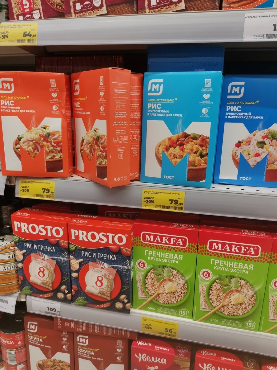 Первым делом я направился к полке с крупами. Раньше брал "Увелку", как все приличные люди. Но тут увидел рис от "Магнита" по цене, как будто его лично мне отсыпали из стратегических запасов страны. Взял на пробу. И что вы думаете? Никакой разницы! Рис как рис, варится, естся, в животе не урчит. Так я и подсел.