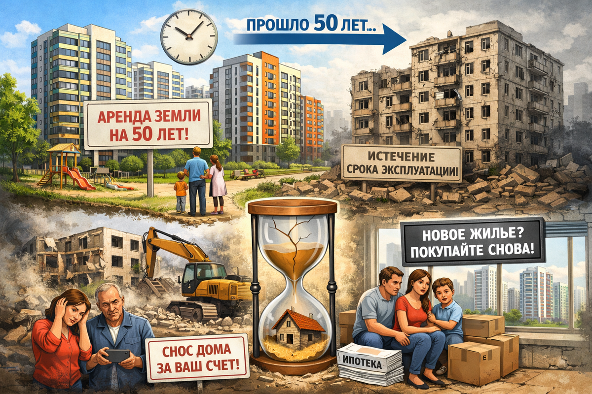 Нам строят красивые дома, с просторными квартирами, с комфортной инженерной начинкой, но с весьма кусачей ценой. Ипотека сглаживает эту проблему. Но давайте посмотрим, что мы покупаем на самом деле? Начнем с земельного участка, на котором стоит этот красивый дом. Этот участок не является собственностью жильцов этого дома, а взят в аренду, как правило, на 50 лет. И это первый капкан. И надо же какое совпадение, расчетный срок эксплуатации всех этих домов тоже 50 лет. И это второй капкан. Откуда цифра 50 лет? ГОСТ 27751-2014, раздел долговечность конструкций и оснований сооружений. А, что будет через 50 лет, будет ли продлена эта аренда, и на каких условиях; и будет ли служить такой дом дольше? Далее дом подлежит сносу? Вы собственник в этом доме, и видимо, сносить его будут за ваш счет. Вы как раз выплатили все ипотечные платежи, и вам никто не обещал предоставить бесплатно жилье взамен сносимого и отслужившего свой срок. Простой пример: когда вы покупаете автомобиль, производитель вам