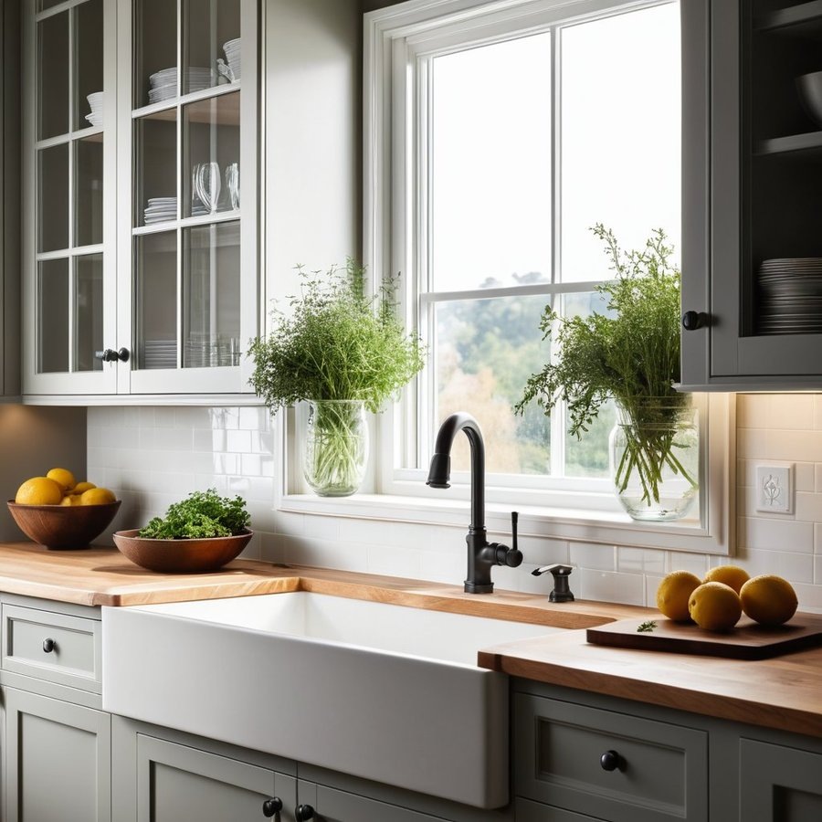 Перенос мойки к окну открывает новые горизонты для дизайна кухни. Это решение не только позволяет создать более светлое и просторное пространство, но и делает процесс готовки более комфортным. Вид на улицу может вдохновлять и улучшать настроение, что особенно ценно в условиях городской жизни. Кроме того, размещение мойки у окна упрощает доступ к естественному освещению, что помогает лучше видеть детали при мытье посуды или подготовке продуктов.