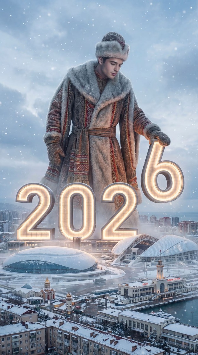 Загружаете своё фото, друга или модели — и становитесь колоссальной фигурой, устанавливающей цифру "6" над зимним городом. Селфи не подойдёт — нужен качественный портрет с хорошо видимым лицом. В промпте вместо [CITY NAME] подставляете любой город: Москва, Сочи, Санкт-Петербург — AI Wiz подберёт узнаваемые landmarks. 🔥 Что получаете: ✔️ 100% сохранение лица — ваши черты, текстура кожи, пропорции без пластикового сглаживания ✔️ Костюм по полу — роскошный Дед Мороз с мехом или элегантная Снегурочка ✔️ Узнаваемый город — landmarks вашего города в правильной перспективе ✔️ Цифры "2026" — массивные светящиеся конструкции в городском пространстве ✔️ Момент установки — вы держите "6", жест говорит "только что завершил" ✔️ Зимняя атмосфера — падающий снег, туман, холодный воздух, свет из окон ✔️ Кинематографичный свет — холодный ambient + тёплое свечение зданий и цифр 🧠 Готовый промпт для AI Wiz: "Using the uploaded reference photo as the character source, keep facial features, bone