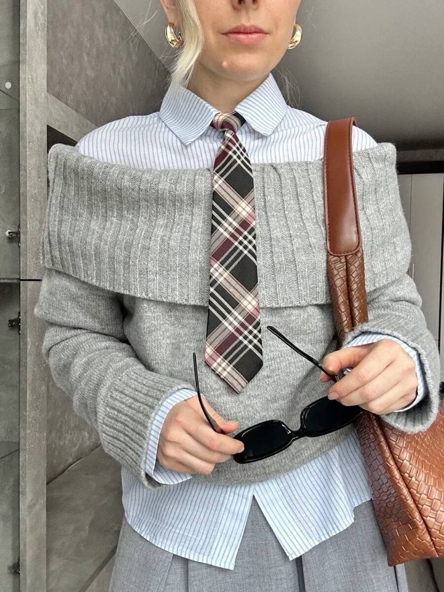 🙌🏼 Ловите свежую идею стилизации!) Казалось бы, джемпер со спущенными плечами - это самостоятельное изделие, но модницы сегодня миксуют его с рубашками❤️🔥 И выглядит это достаточно интересно и необычно😇 Конечно, такая стилизация не для всех, но если вы любите эксперименты и готовы к смелым образам, можете попробовать😉 Как вам такой прием? Другие стилистические приемы: 👉🏼Юбка с пайетками 👉🏼Стилизации вязаного костюма 👉🏼Манишка 👉🏼Стилизация шарфа 👉🏼Овечья шуба ❤️🔥Все посты со стилистическими фишками вы найдете по тегу: #MLстилистическиеприемы