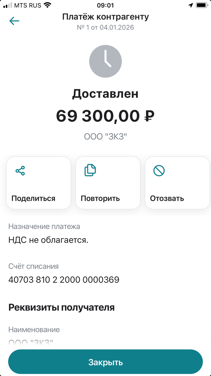 Недельный запас оплачен.