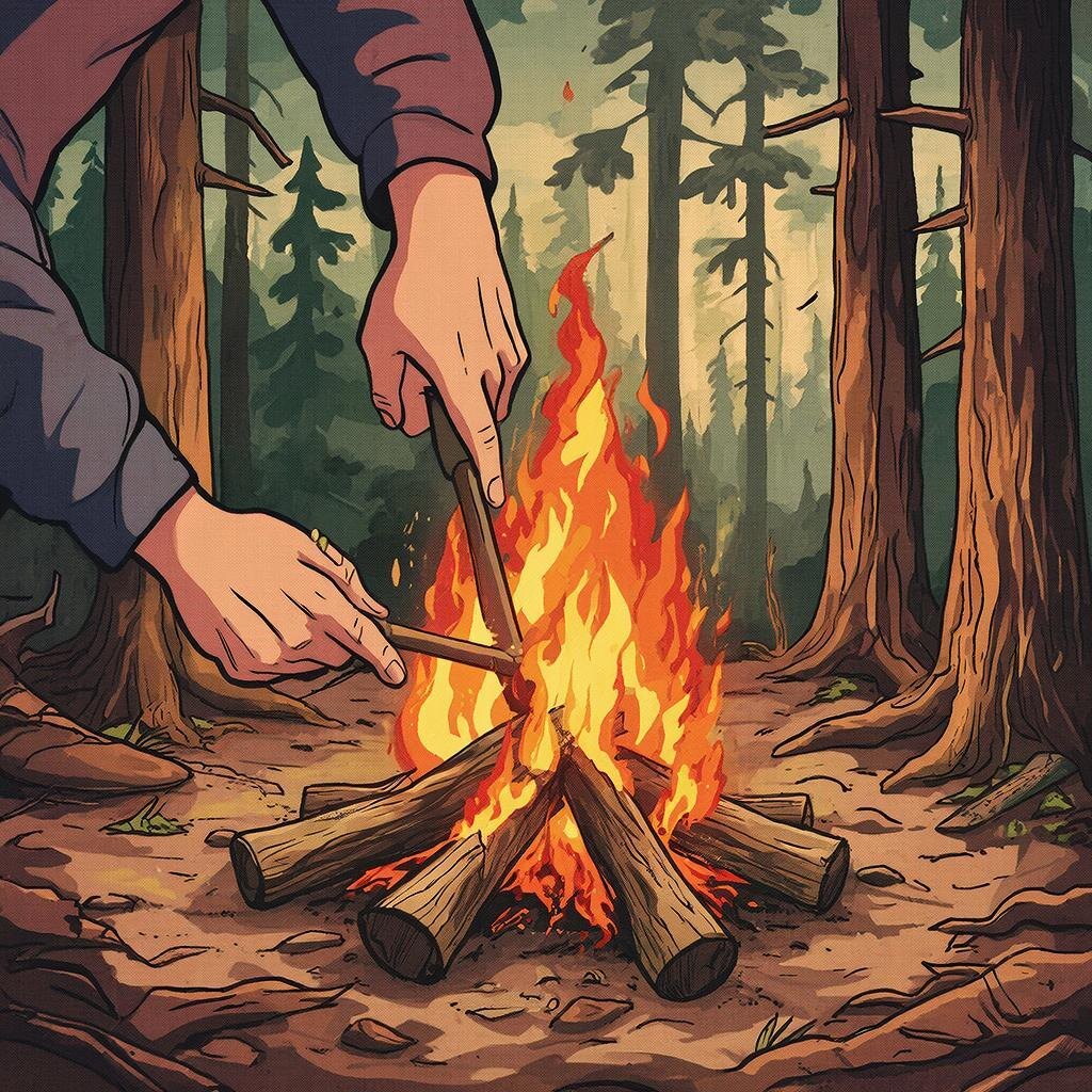 Помни: трение рождает пламя! Найди сухое дерево, лучше всего лиственницу (смола поможет!). Сделай углубление в доске, круглой палочкой выковыривай труху, пока не начнет тлеть. Аккуратно перенеси её в "гнездо" из сухой травы или бересты и раздувай! Тепло спасёт от переохлаждения, а дым отпугнёт диких зверей. 🐻❄️ Строим шалаш из веток, чтобы не промокнуть. И помни: оставайся на месте! Тебя найдут быстрее. 📲 Подпишитесь: https://dzen.ru/zp1