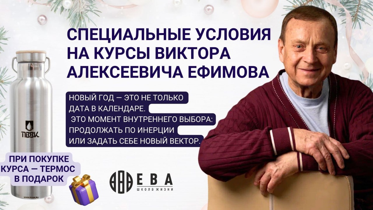 Мы напоминаем, что в первые дни нового года в Школе управления собой продолжается новогоднее предложение на авторские курсы Виктора Алексеевича Ефимова. Мы обновили стоимость обучения, чтобы начало 2026 года стало для вас не формальным, а по-настоящему осмысленным — с погружением в целостное мировоззрение и практическую работу с собой. 🎁 Подарок для участников До 7 января при покупке курса мы отправляем качественный термос ПВВК — полезный и актуальный подарок для зимнего времени. Небольшой знак поддержки на старте пути. Новый год — это не только дата в календаре. Это момент внутреннего выбора: продолжать по инерции или задать себе новый вектор. 🗓 Акция действует до 7 января. Подробности — по ссылке. Если есть вопросы, можно получить консультацию.