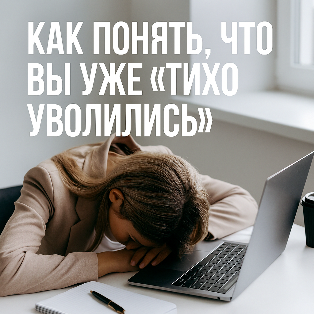 «Тихое увольнение» - это когда ты вроде всё ещё работаешь, но по факту - уже нет. Делаешь минимум. Без энтузиазма. Без идей. Ровно столько, чтобы не уволили. И мысленно уже давно не здесь. Как понять, что ты в этом состоянии: - Ты делаешь только то, что написано в должностной инструкции. Ни буквы больше. - Корпоративы, совещания, обсуждения - проходишь «для галочки» или вообще игнорируешь. - Коллеги просят помочь - отказываешь. «Это не мои задачи». - Ты считаешь часы до конца рабочего дня. Ровно в 18:00 - выключаешь комп и исчезаешь. - Тебе плевать на результаты компании, проекты, планы. «Мне платят - я делаю, остальное не моё». Почему это происходит: Чаще всего - выгорание, несправедливость (коллега получает больше за то же самое), токсичная среда, отсутствие роста. Ты устала тянуть больше, чем тебе платят. И решила сделать ровно столько, сколько написано в контракте. Проблема в том, что это состояние - тупик. Ты не развиваешься, не растёшь, твоя ценность на рынке падает. А работодате