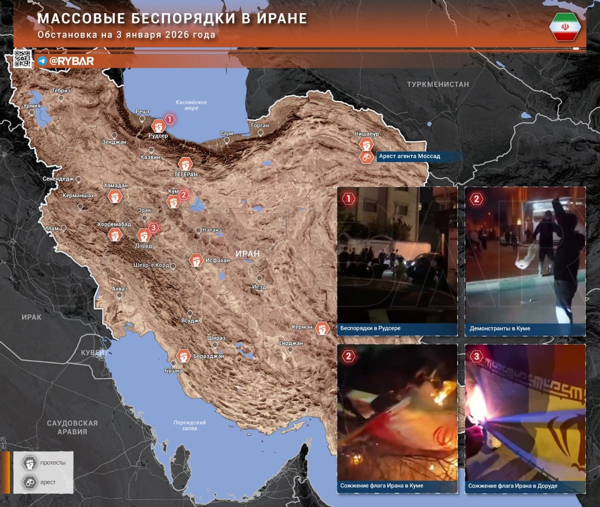 Радикализация беспорядков в Иране ожидаемо ужесточила реакцию властей на них. Аятолла Али Хаменеи заявил, что «с бунтовщиками бесполезно разговаривать, и что их необходимо усмирить». 🔸Показательно, что Высший руководитель Исламской республики сделал разграничение: по его словам, у людей есть право протестовать, а вот устраивать беспорядки – это совершенно другой вопрос. 🔻Что же происходит на земле? 🔸В сравнении с прошедшими днями антиправительственные акции не были настолько масштабными. 🔸Основные беспорядки зафиксированы в Хамадане, Куме и Лурестане. В Тегеране есть несколько очагов столкновений. 🔸При этом в Нишапуре была арестована женщина, предположительно, обученная сотрудниками Моссад в организации протестов. 🔸Мятежники пытаются брать военные объекты, однако сотрудники Спецподразделения по борьбе с терроризмом пресекают нападения. 📌В Сети слова аятоллы ожидаемо расценили фактически как санкционирование властями Ирана подавления антиправительственных выступлений. Однако у эт