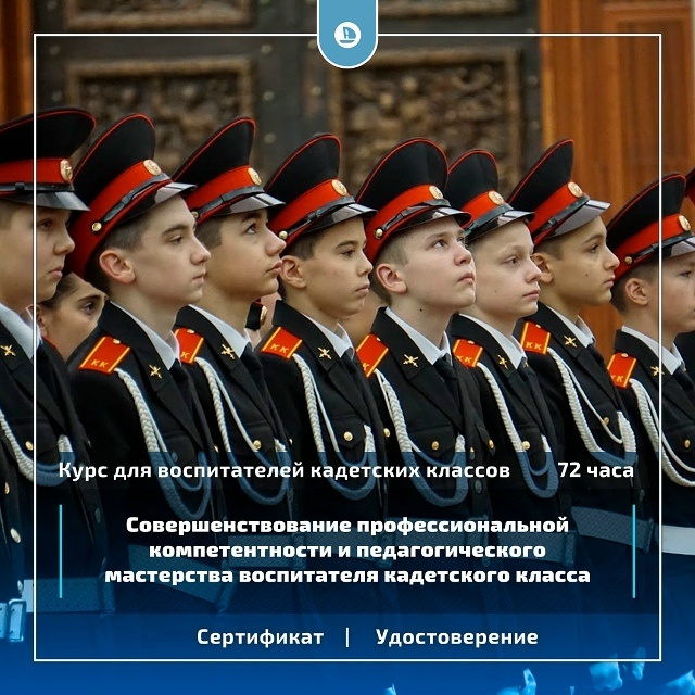Приглашаем воспитателей кадетских классов изучить курс повышения квалификации «Совершенствование профессиональной компетентности и педагогического мастерства воспитателя кадетского класса» https://attestatika.ru/kursy/kurs-dlya-vospitatelej-kadetskih-klassov-ob-organizaczii-vospitatelnogo-proczessa/